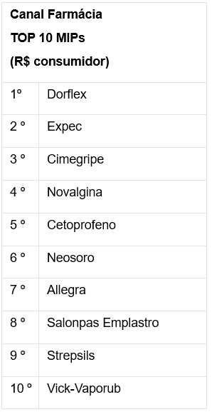 Top 10 MIPs mais vendidos em farmácias